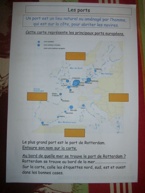 de CM1 où l'on cherche à localiser les principaux ports européens et à