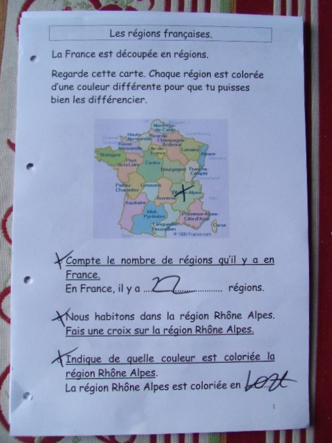 de CM1 qui a pour objectif de présenter les régions françaises et de