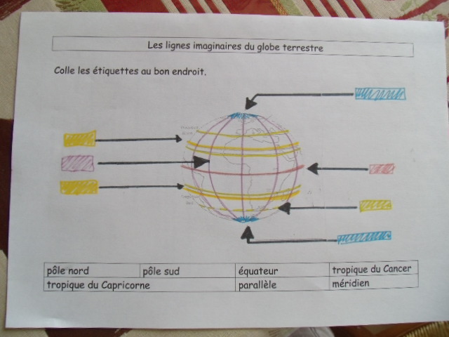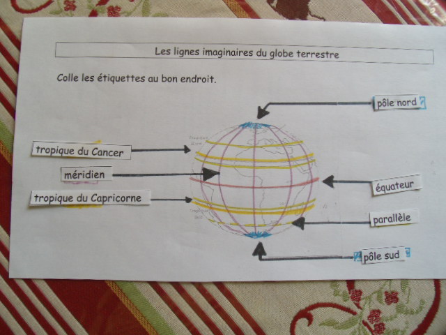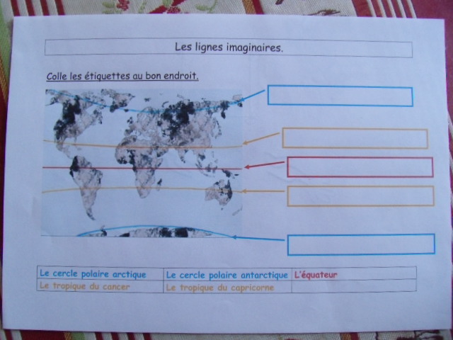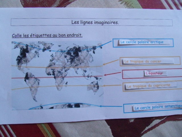 - Récapituler l'ensemble du vocabulaire des lignes imaginaires (tropiques et pôles en plus)