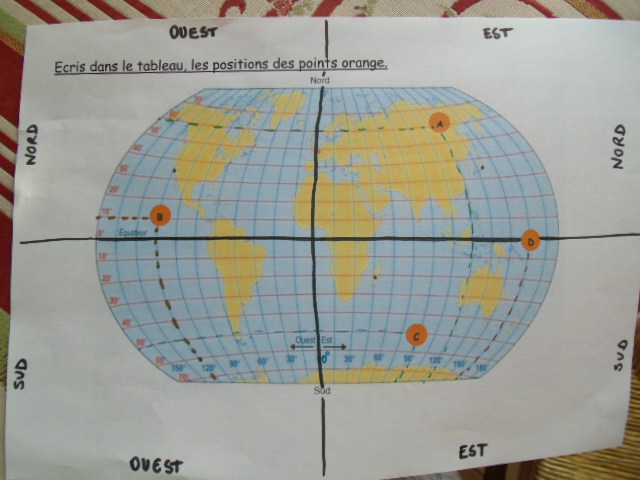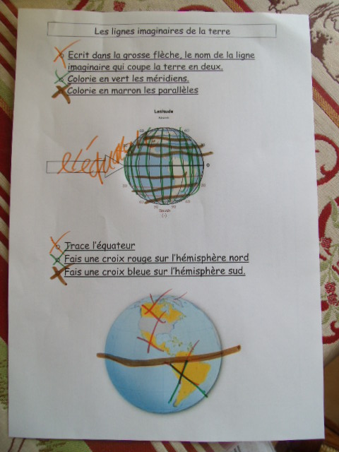- Travailler la signification des termes équateur, méridiens et parallèles, hémisphères nord et sud.