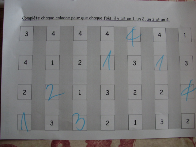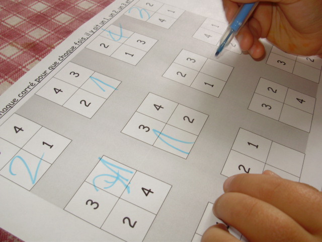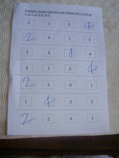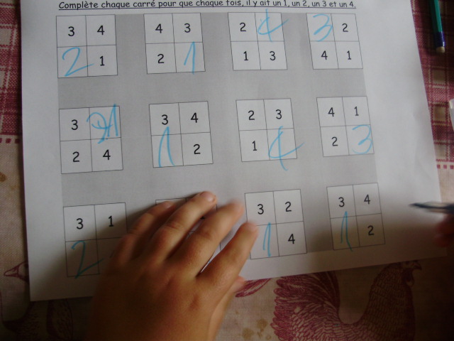 format pdfPuis, je lui ai proposé de compléter la série de 4 chiffres dans un carré.