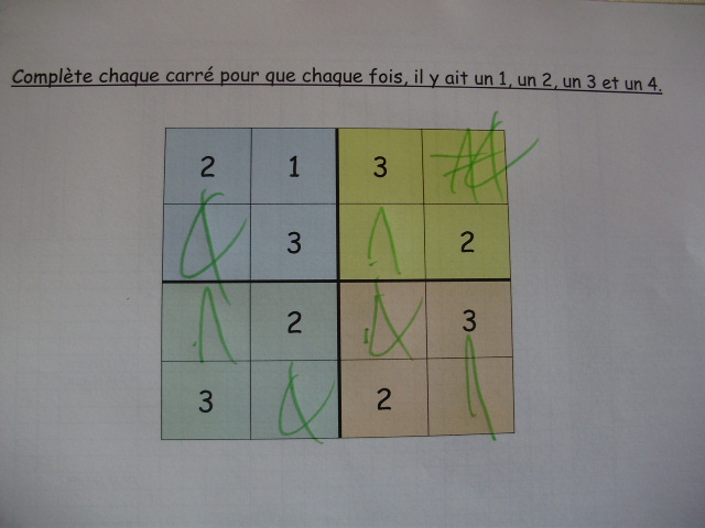 compléter en prenant en compte le carré, les lignes et les colonnes.