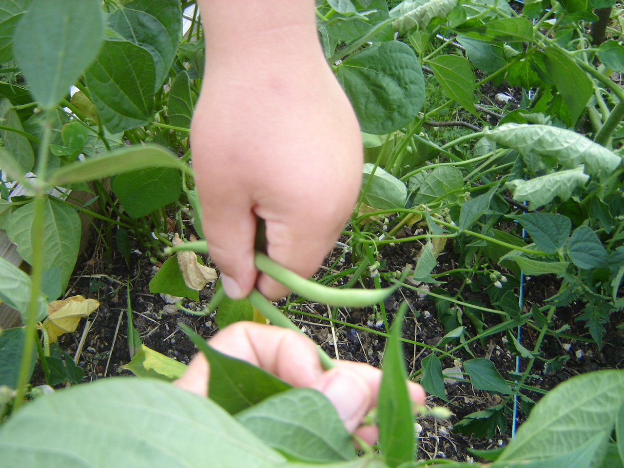 | Les haricots verts : nous avons fait notre première récolte aujourd'hui. Je vous montre cela en photos très bientôt. |