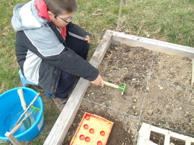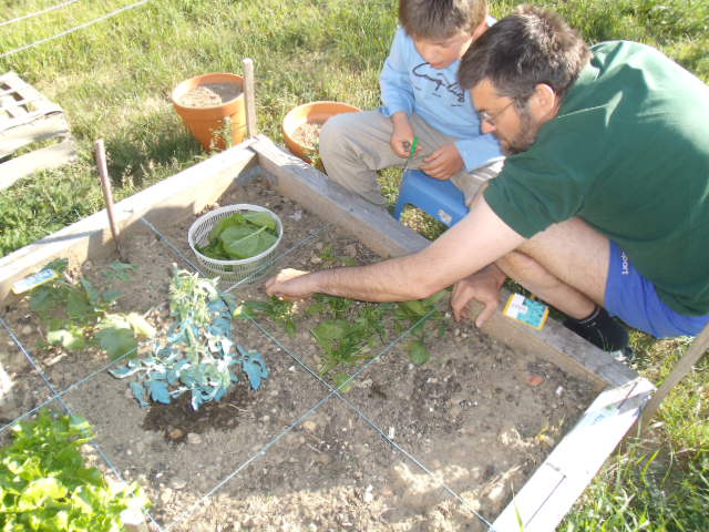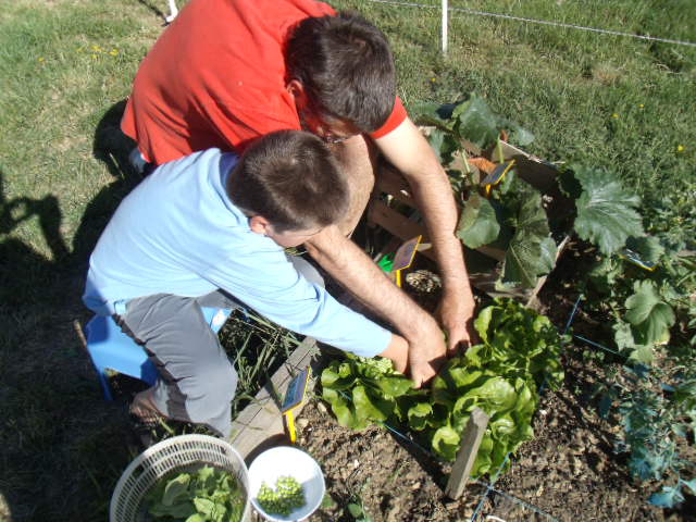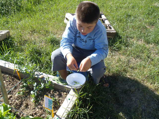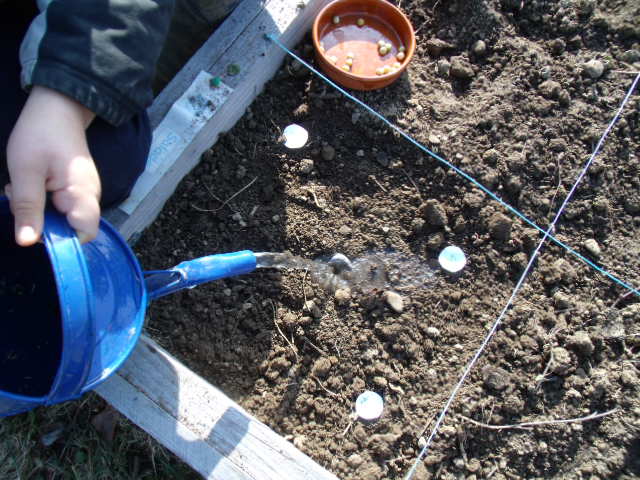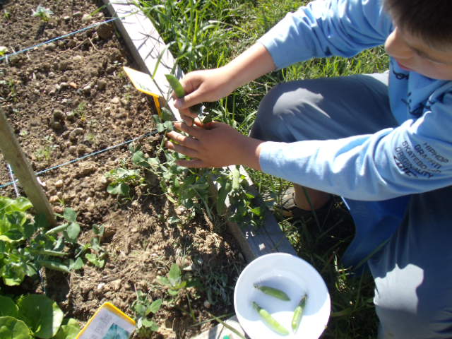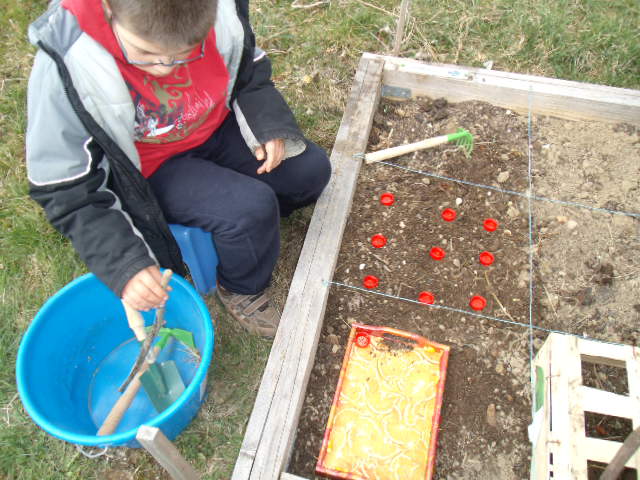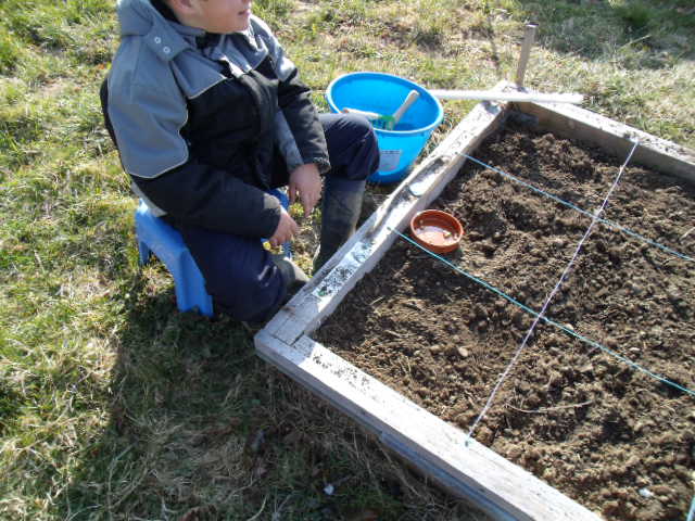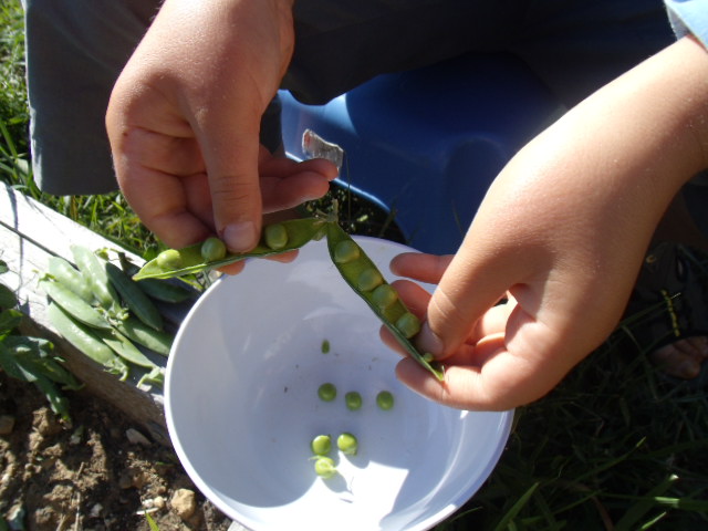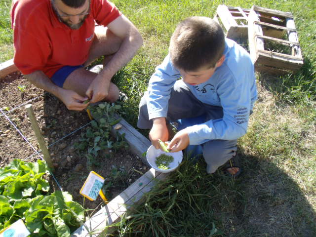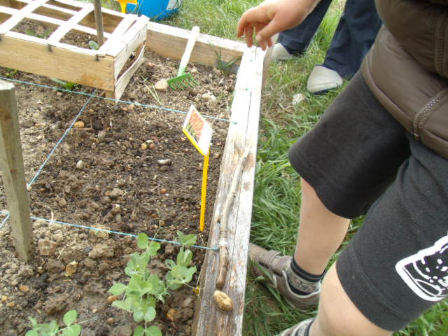 premiers semis de petits pois. Notre fils n'est pas très motivé.Nous