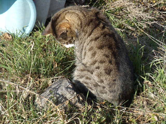 Voici Solitaire, notre chat, qui attend que l'on ait le dos tourné pour aller remuer la terre du jardin du petit roi.