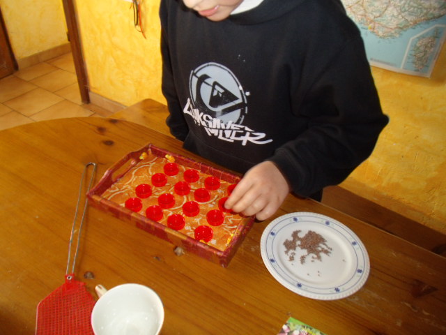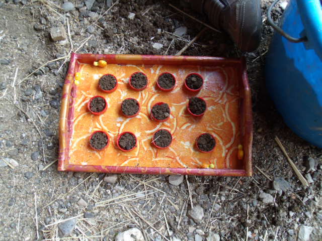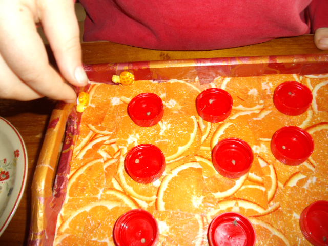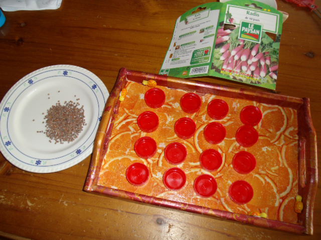On a mis en place les graines dans nos bouchons dans la cuisine, bien