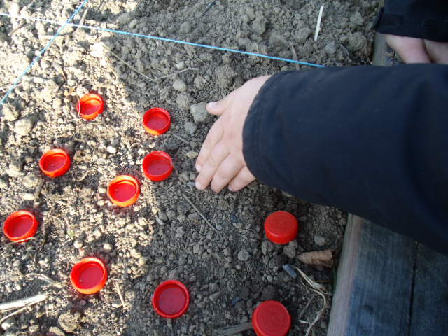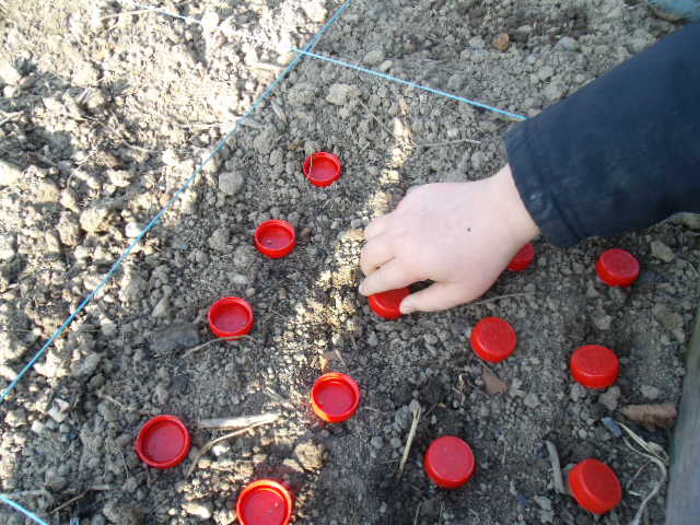 Le terrain est balisé : le petit roi sait où il devra creuser pour disposer les 5 poquets de petits pois.