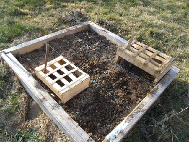 disposé sur le semis d'une cagette pour le protéger de notre "zoulou"