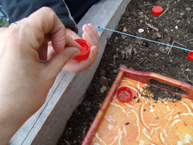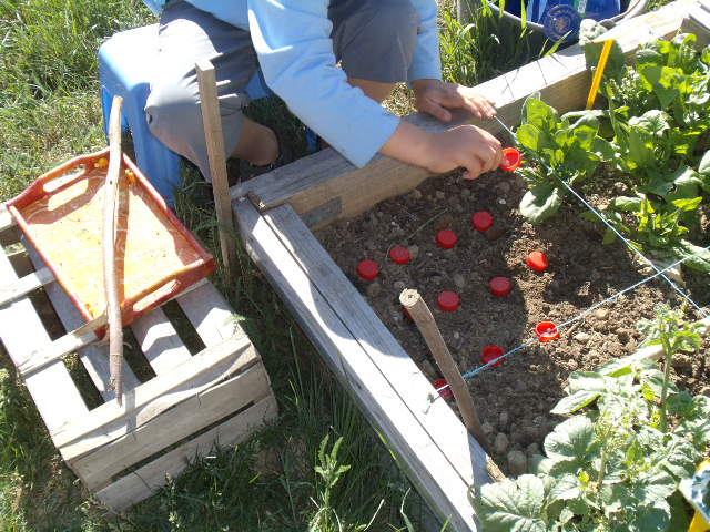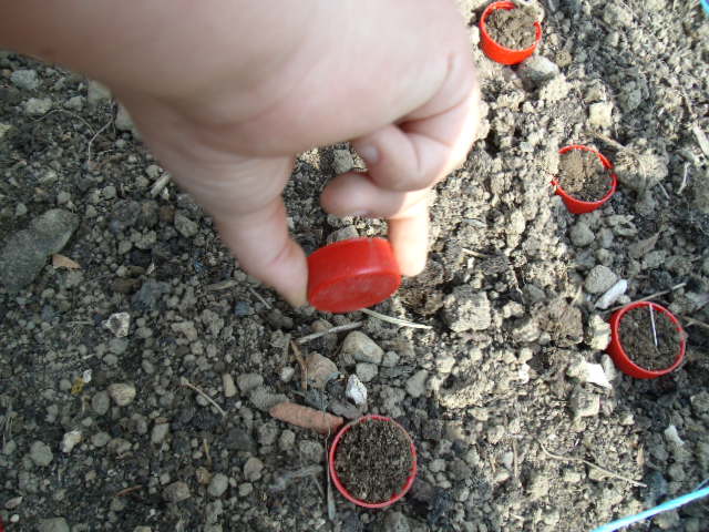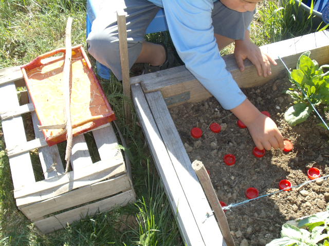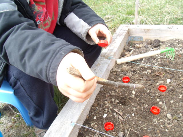 : je pousse le bouchon, je fais le trou, je verse les graines du