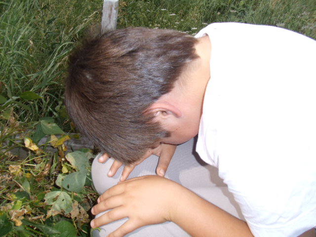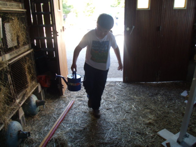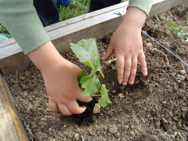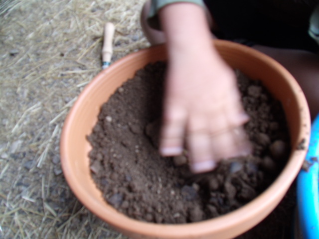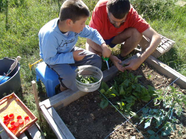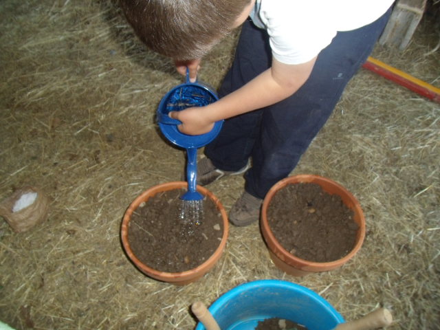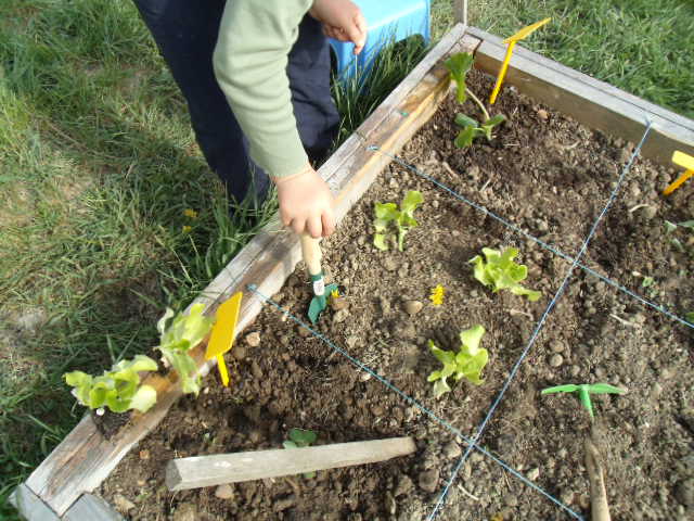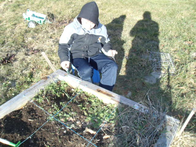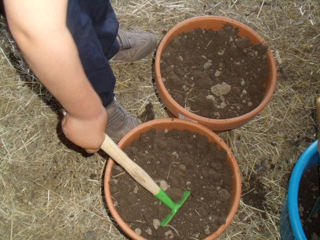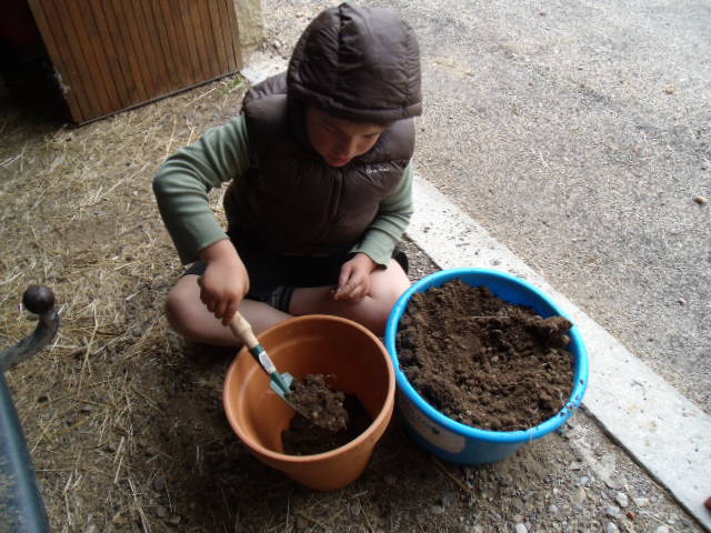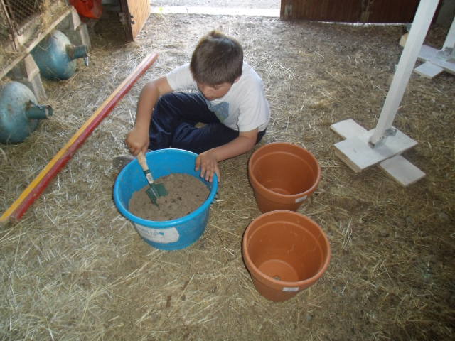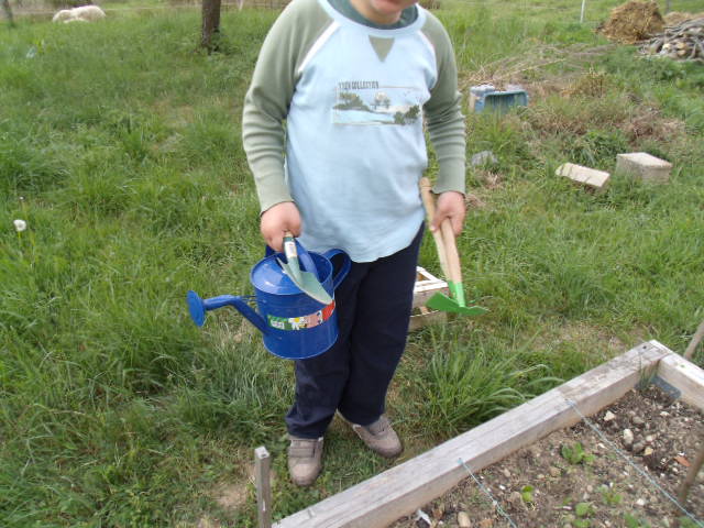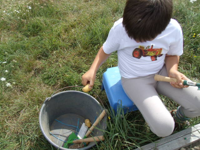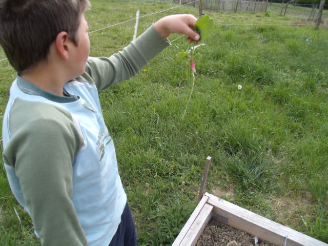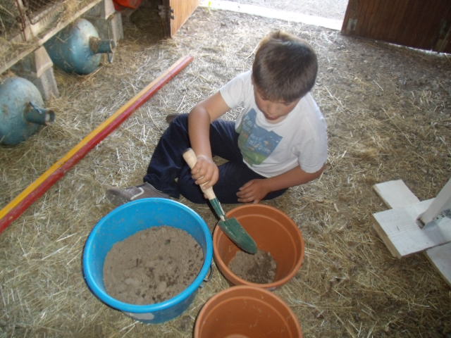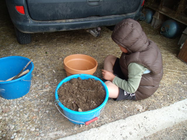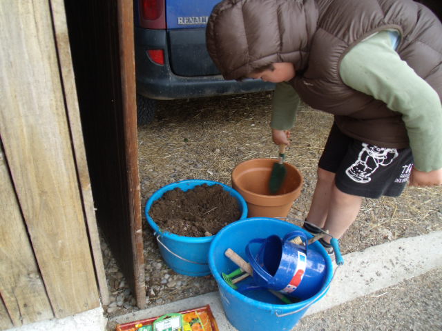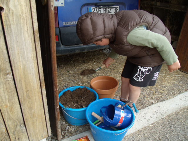 Notre fils râle un peu car il a de la terre sur les mains et "ça le gène"!