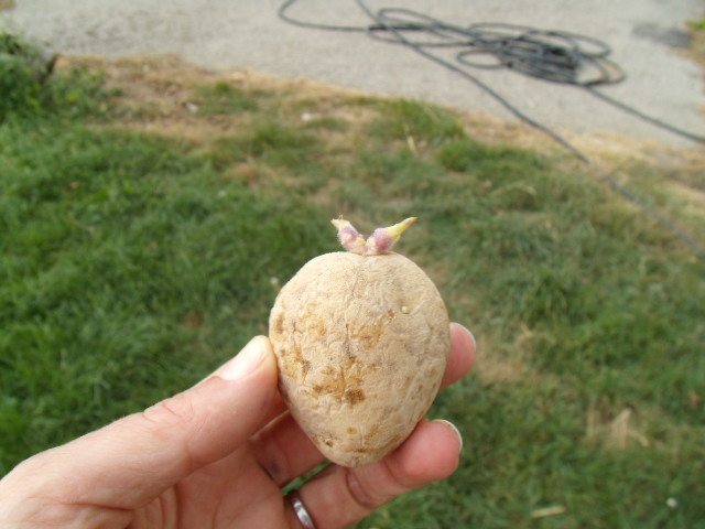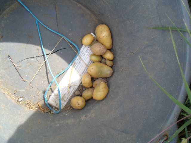 la récolte est maigre, mais pour une seule pomme de terre plantée, c'est déjà bien.