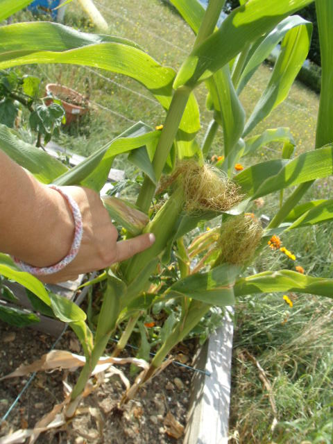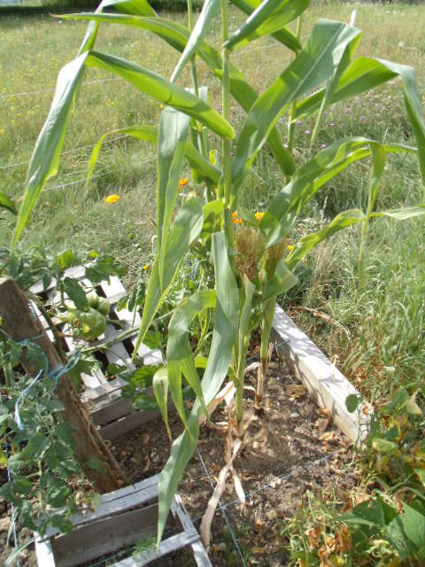 Le maïs est devenu très grand, mais présente l'avantage de ne pas envahir le jardin.