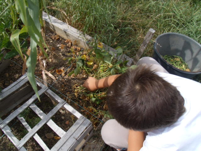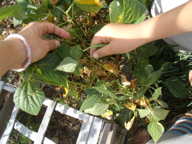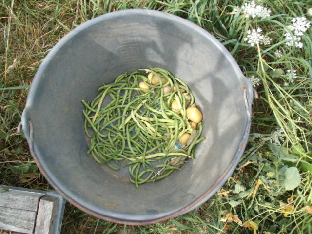 Puis, on a cueilli les haricots verts.