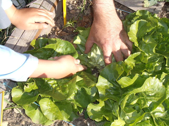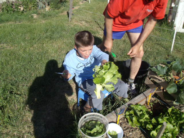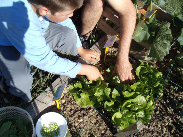 Ensuite, on est passé à la récolte de nos légumes avec l'aide de papa :