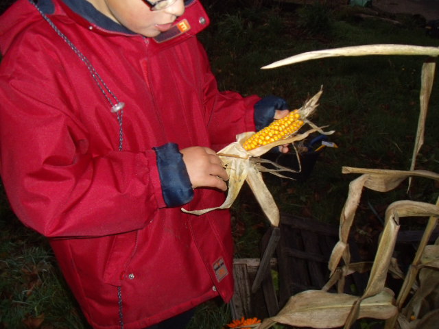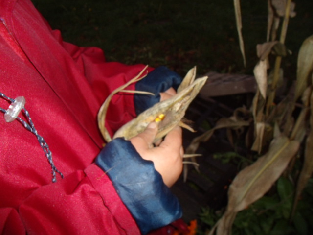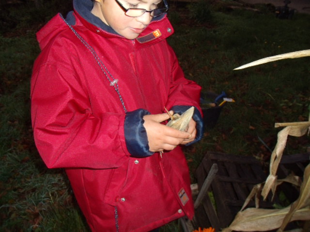 petit à petit la "poupée" pour découvrir les grains de maïs. Une fois