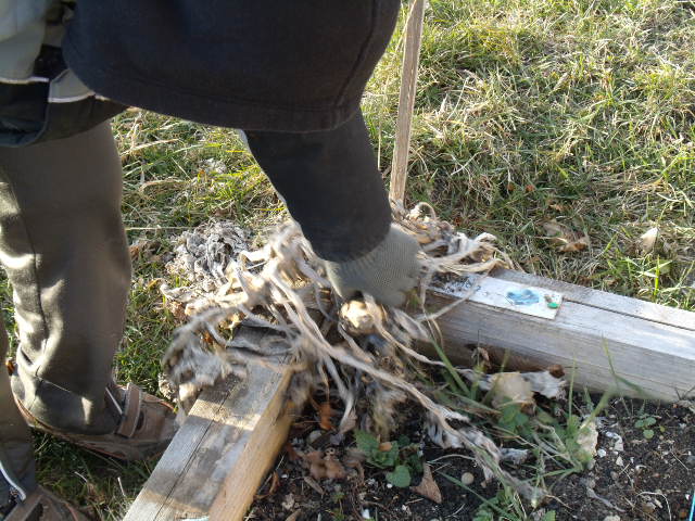 Le premier travail est de piocher la terre pour dégager les racines.