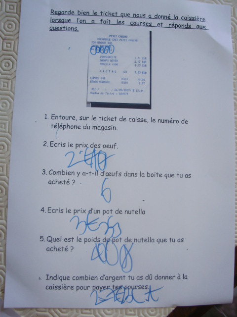 fiches qui cette fois portent sur la lecture de tickets de caisse. Chaque