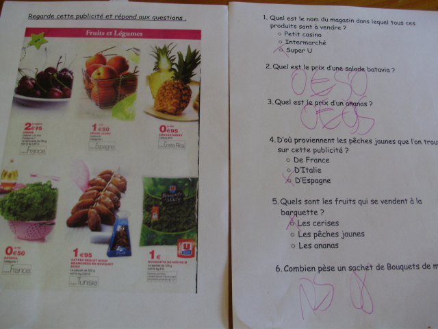 Ensuite, j'ai proposé des fiches qui permettent de lire les informations qui sont présentes sur les emballages.Elles sont un peu plus complexes car il faut être attentif lorsque l'on observe l'image et rechercher une information, qui selon le produit, n'est pas toujours indiquée au même endroit ni sous la même forme.