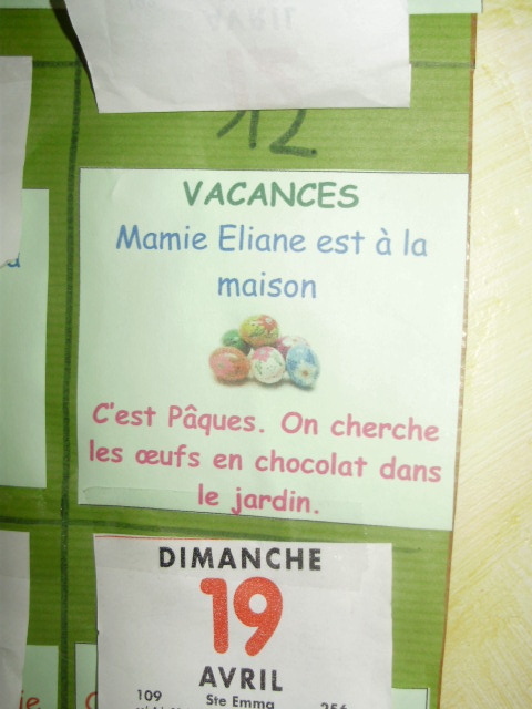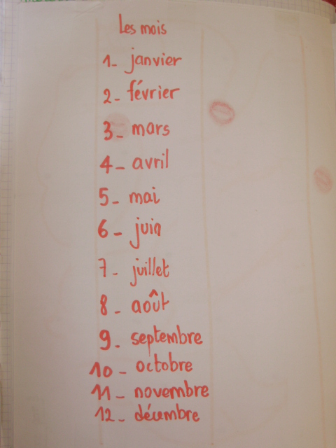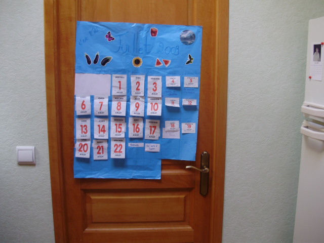 sur la feuille murale du mois que j'ai préalablement préparée. Ainsi,