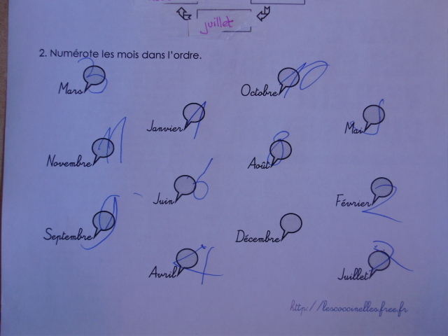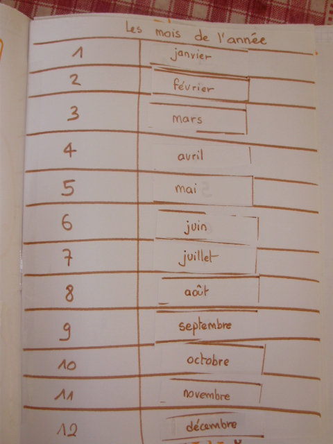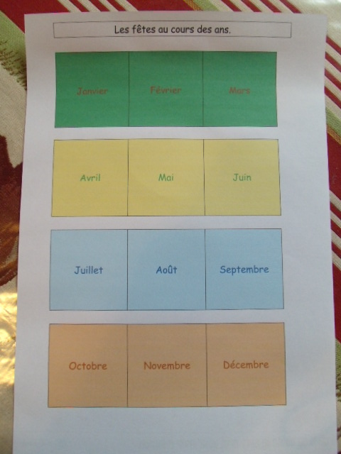 le nom d'un des mois. L'enfant doit coller l'étiquette du nom de chaque