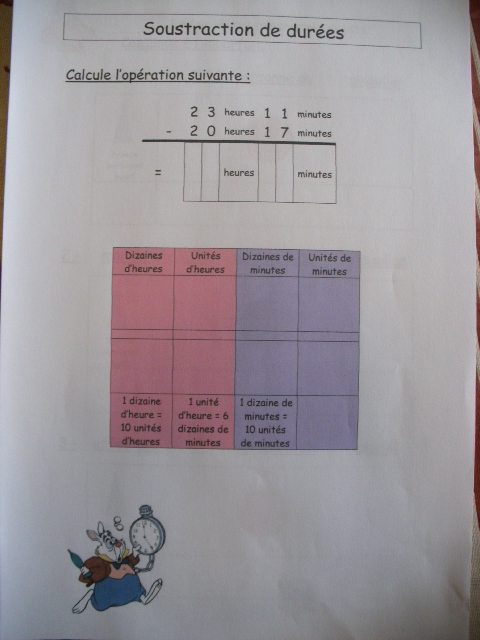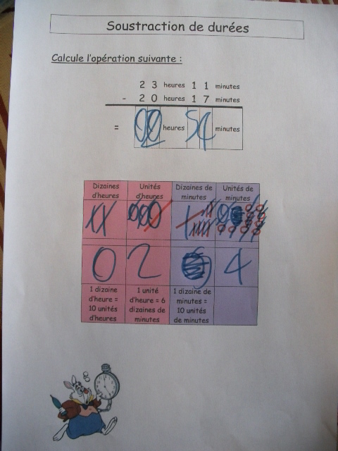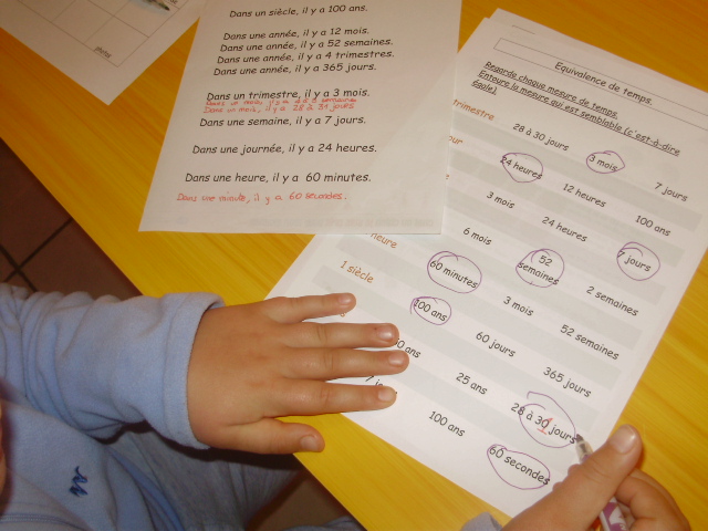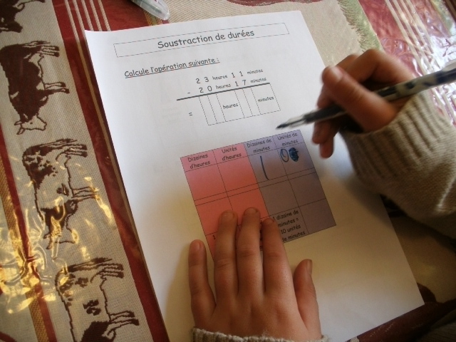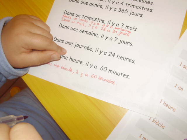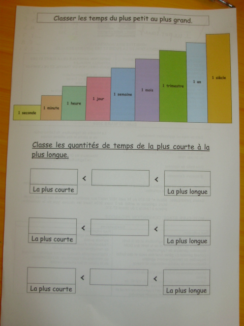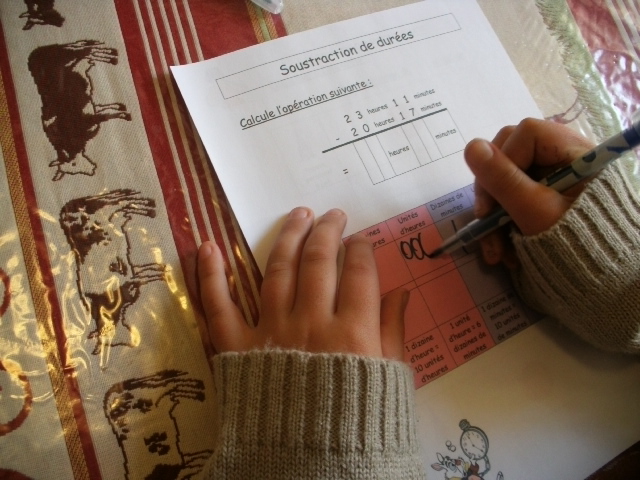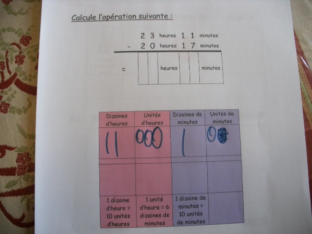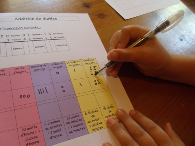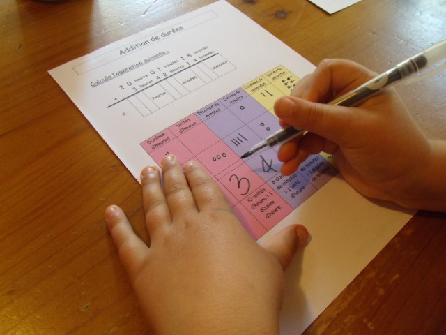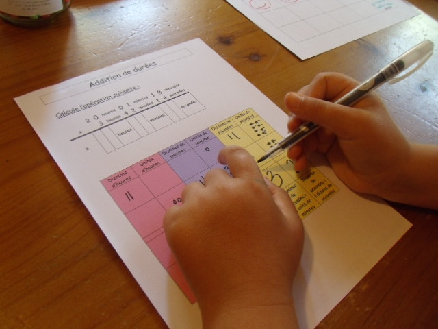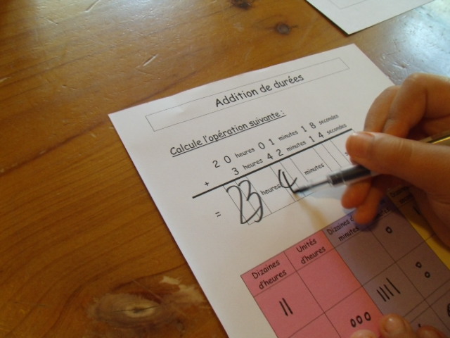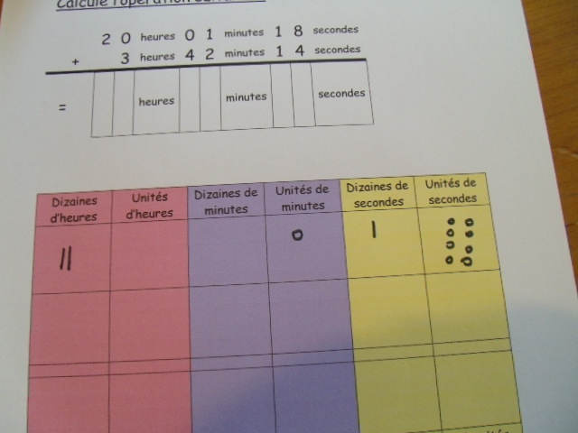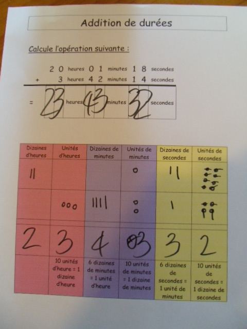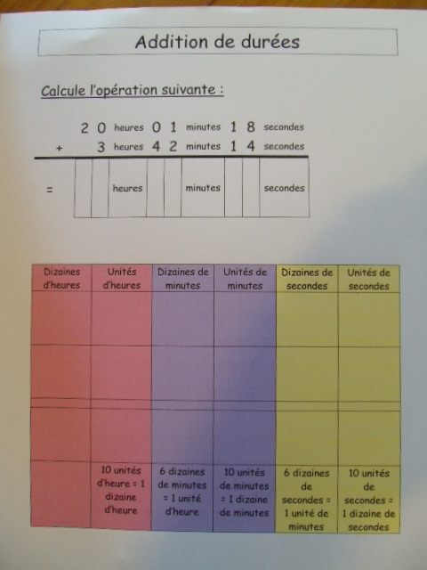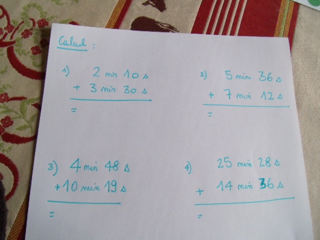Tout ce matériel étant prêt, j'ai préparé une feuille avec des additions de durées à réaliser.