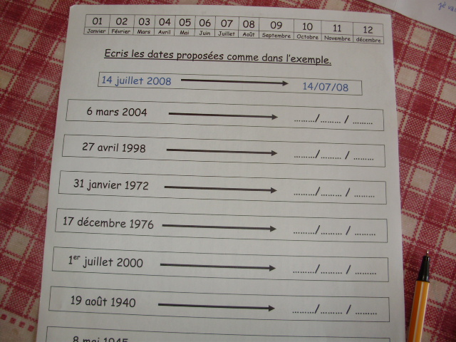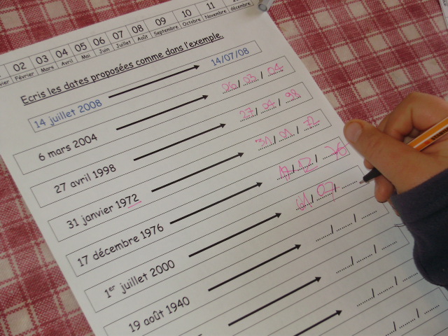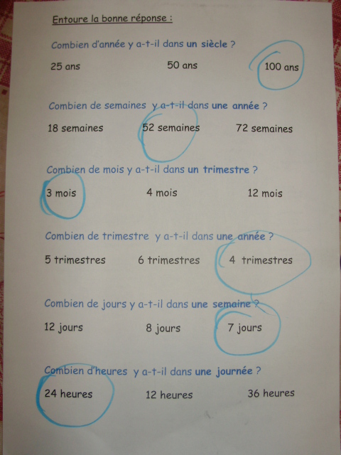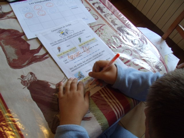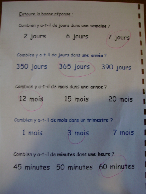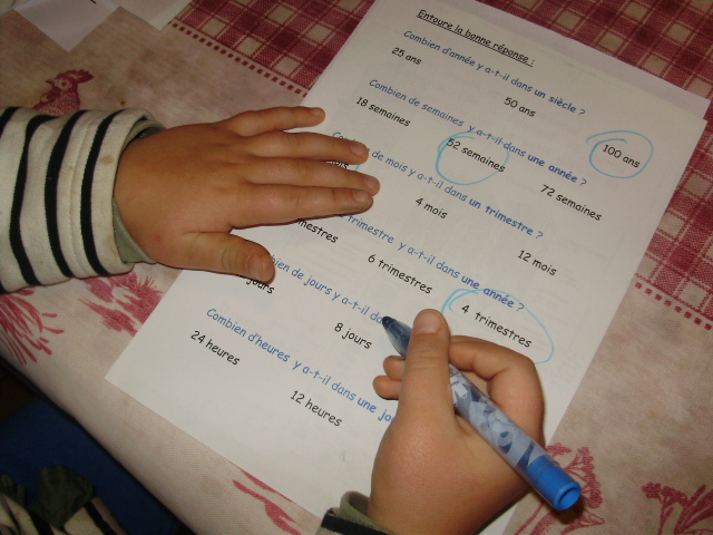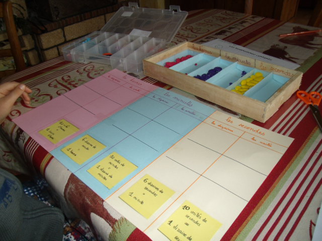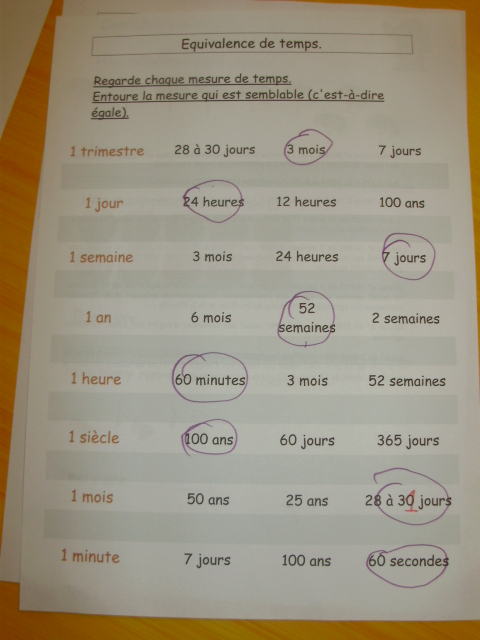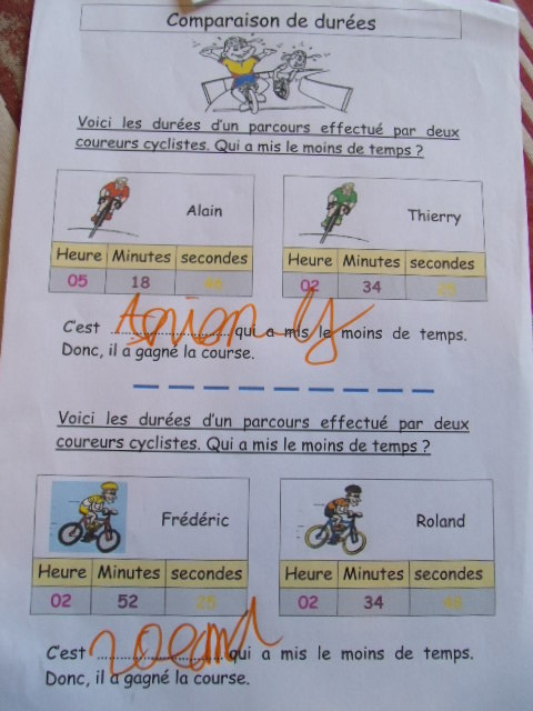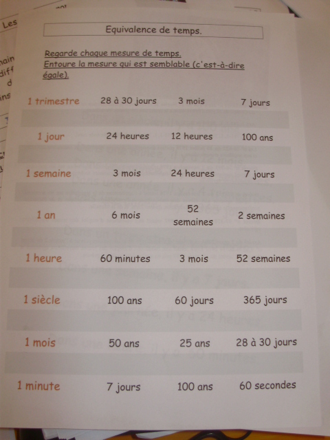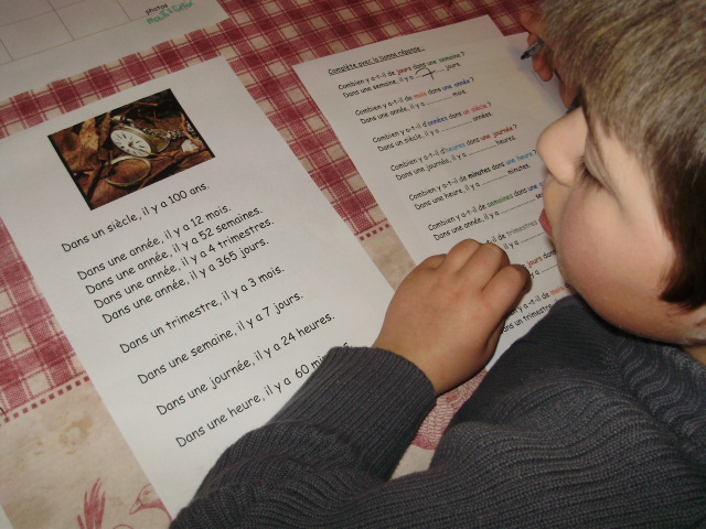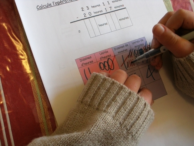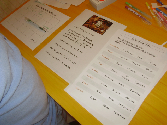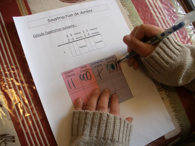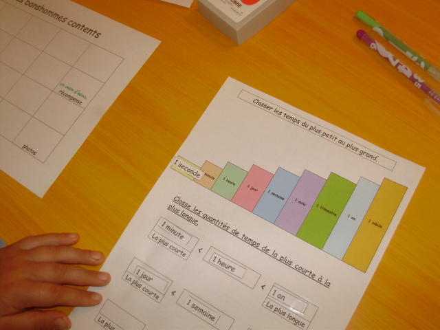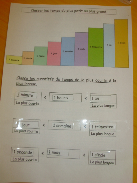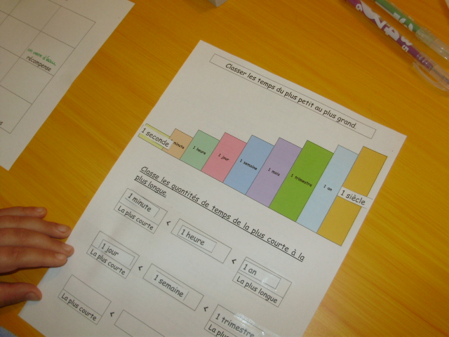 Tout ce matériel étant prêt, j'ai préparé une feuille avec des additions de durées à réaliser.