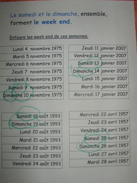 Cela permet d'aborder simplement les jours de la semaine.