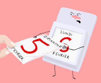 les matins, on enlève la première page du calendrier, pour la coller