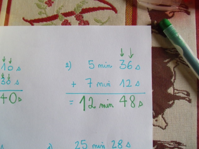 Les deux nombres à additonner sont en place : 5 minutes et 36 secondes + 7 minutes et 12 secondes.