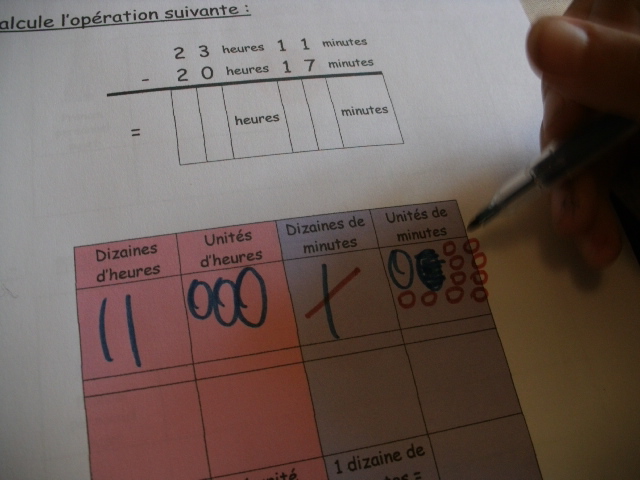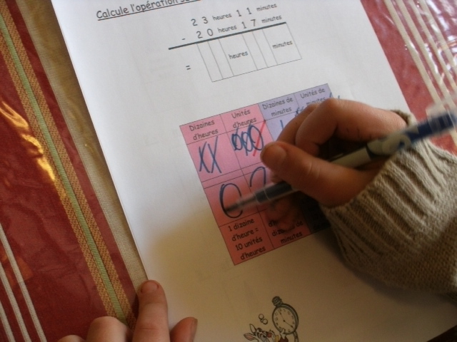 dois soustraire une dizaine de minutes, je barre (en rouge) une unité