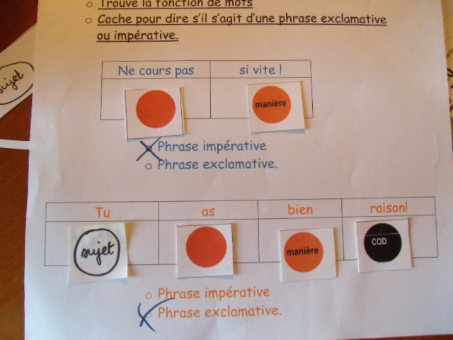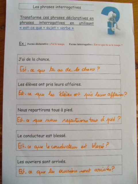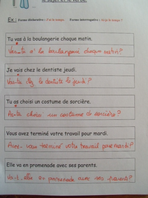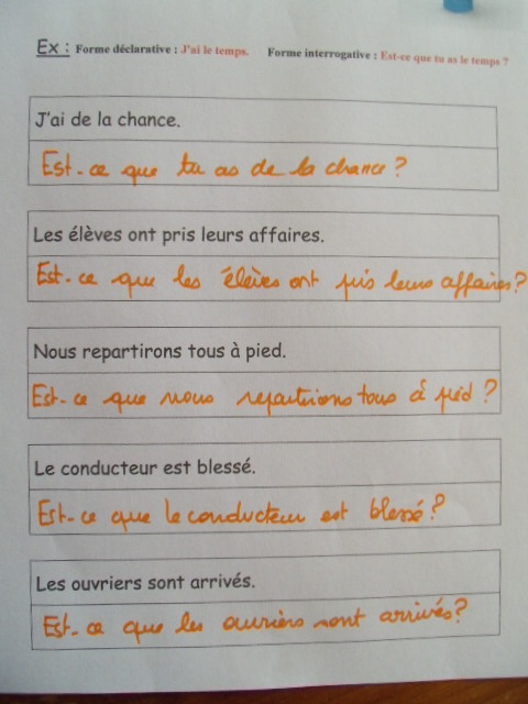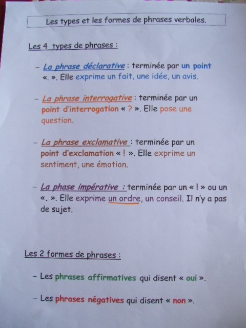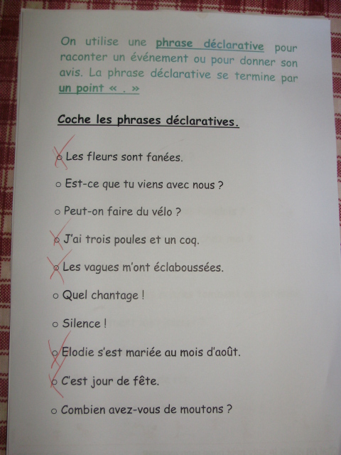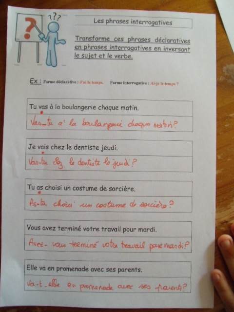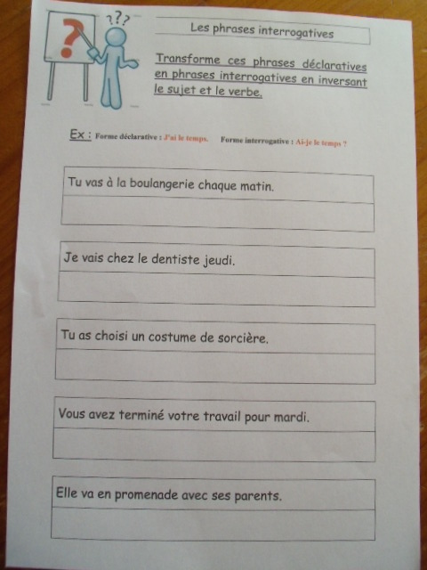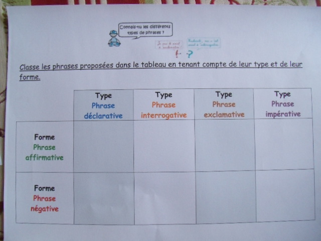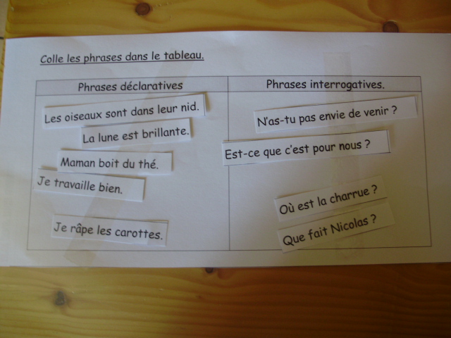 Nous avons commencé par travailler sur les phrases déclaratives et interrogatives.