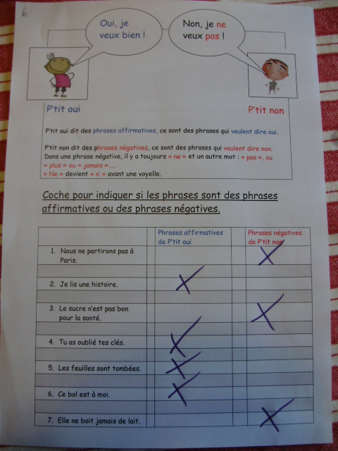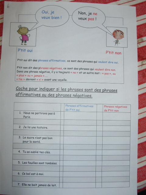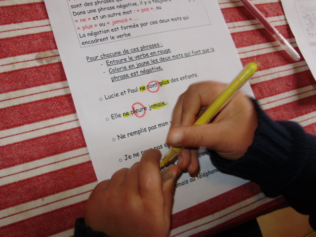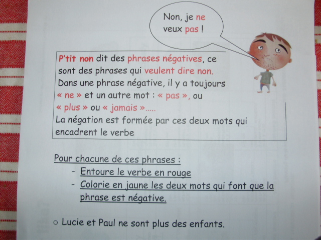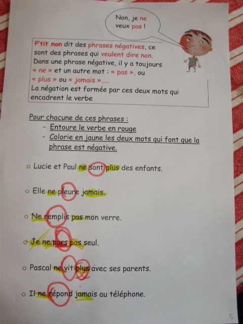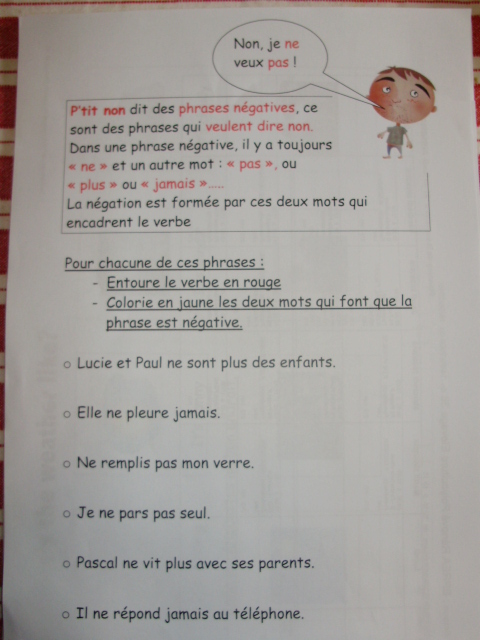 J'ai repris ce travail avec les phrases négatives car en CM2, on