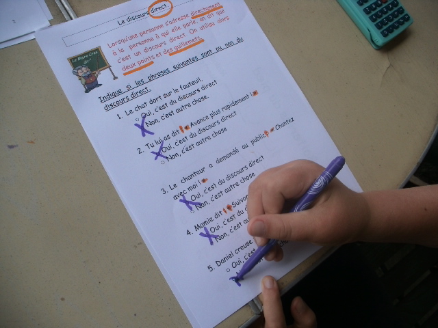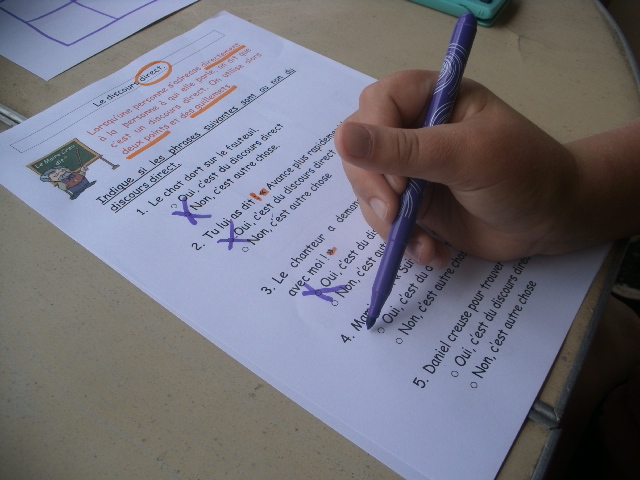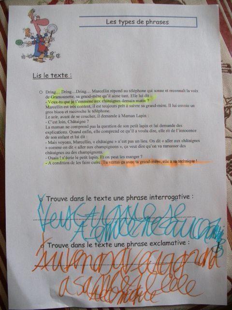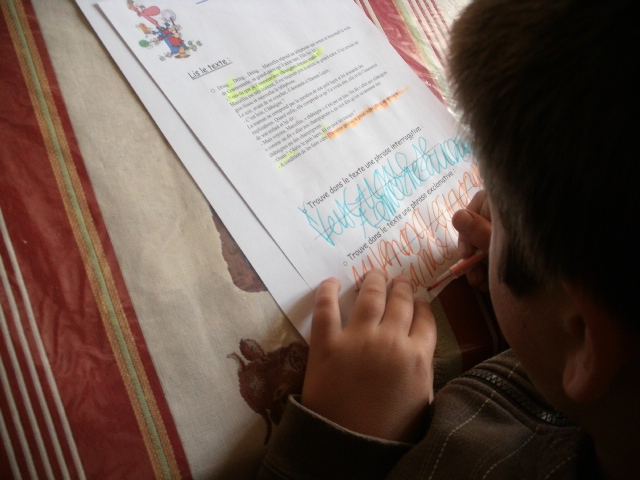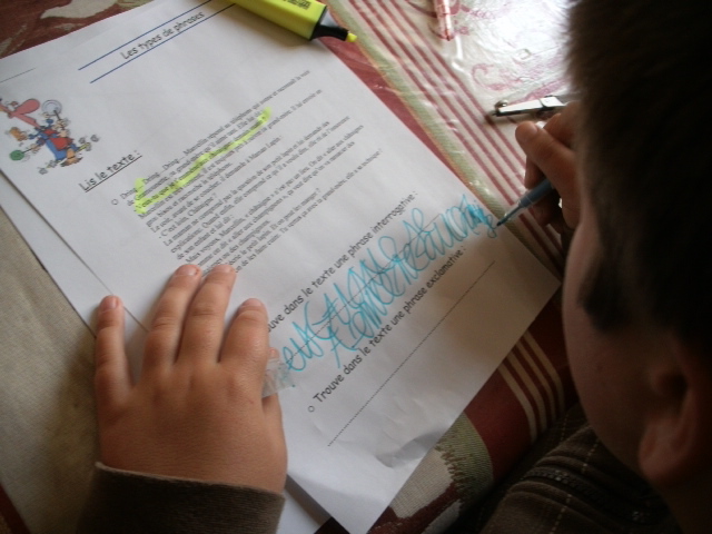 Je demande d'abord à notre fils de surligner la phrase qu'il a repéré