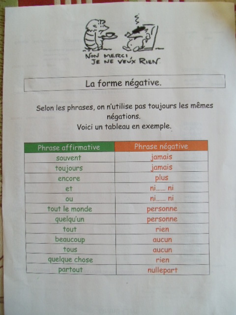 parlé, que j'ai préparé des séries de fiches sur les phrases négatives.