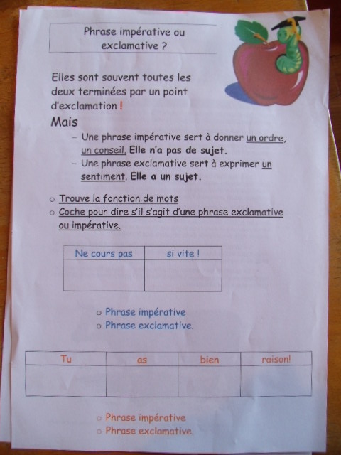 exclamative, je demande au petit roi d'indiquer d'abord la fonction des