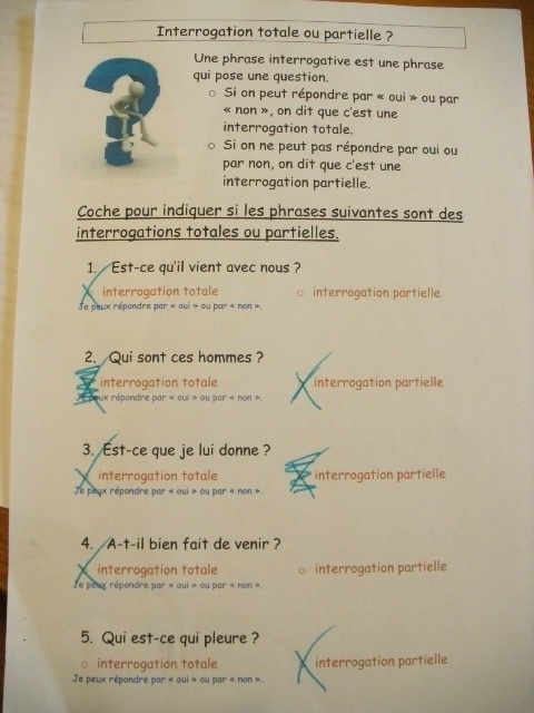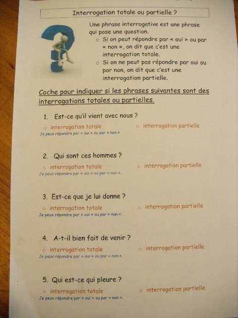 En préparation au programme de sixième, nous travaillons à la différenciation entre ces deux types d'interrogation.