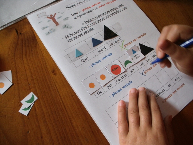 à un verbe donné. J'utilise le support des symboles montessori pour