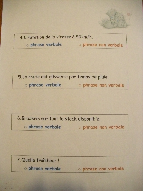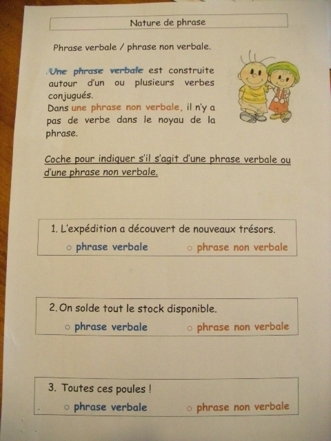 Fiches "phrase verbale ou phrase non verbale - série 3"