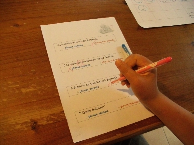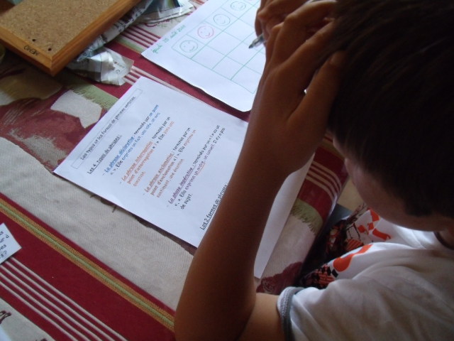 Pour aider notre fils, je lui propose comme support un tableau qui
