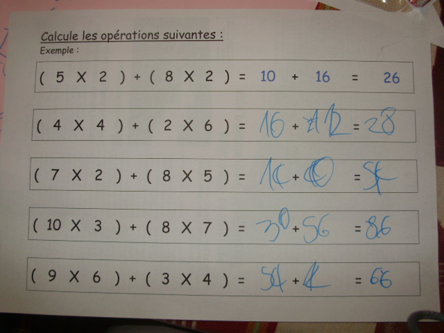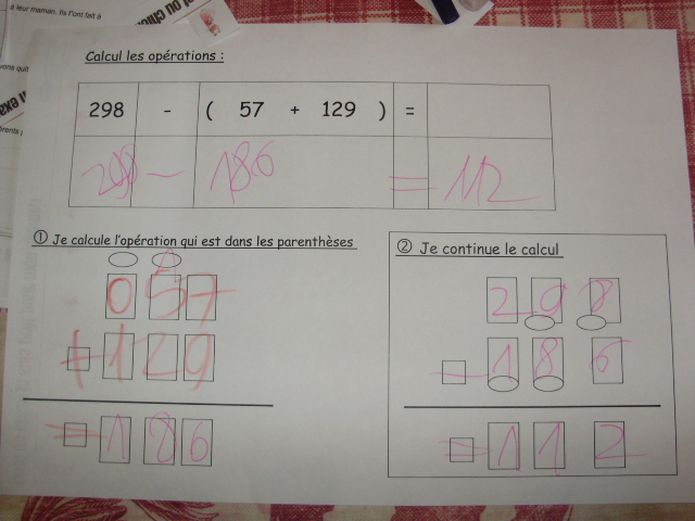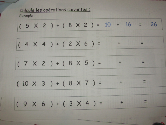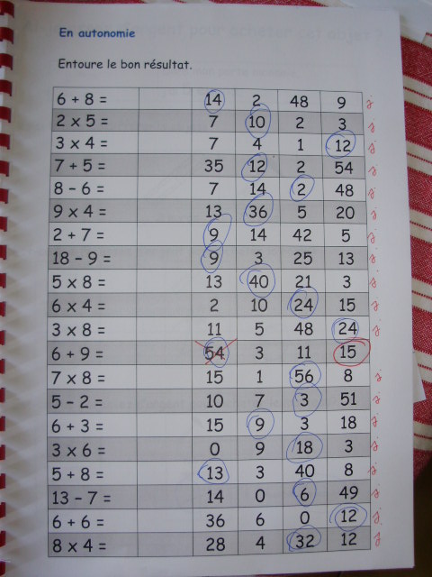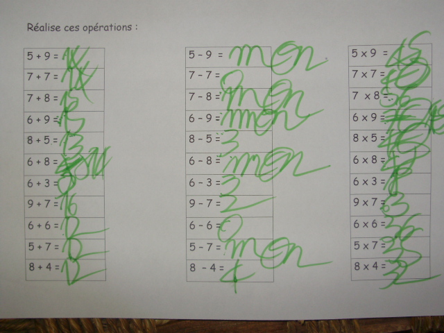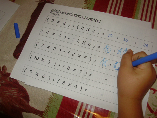 soustraction et enfin les tables de multiplication.... Tout cela nous a