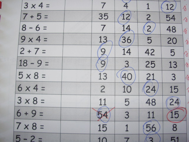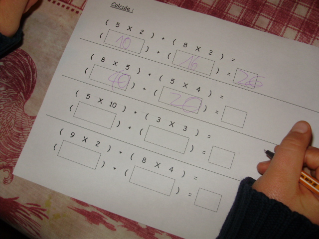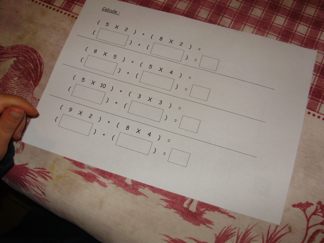 multiplication, j'ai fait des fiches sur lesquelles notre fils