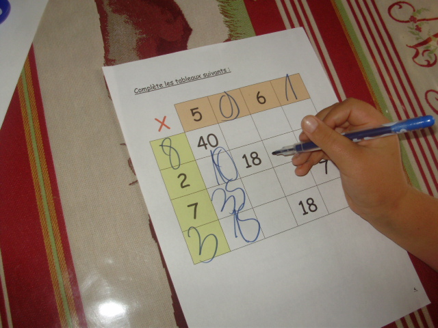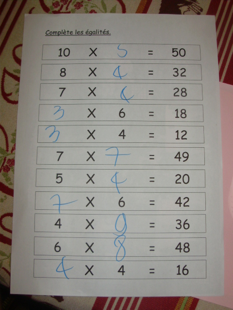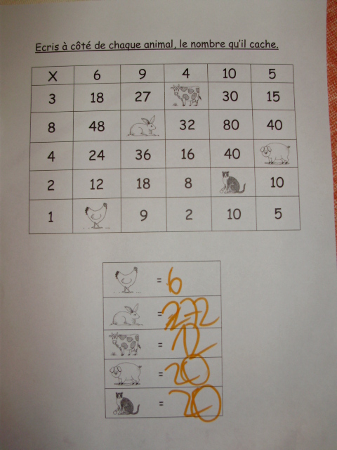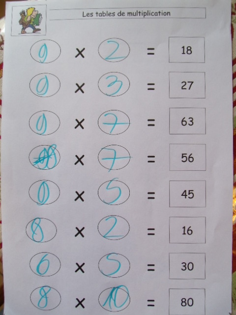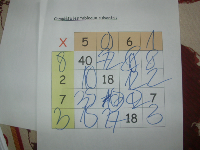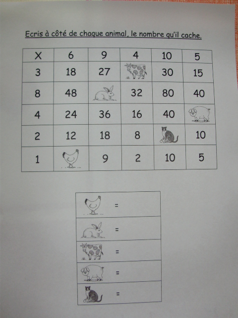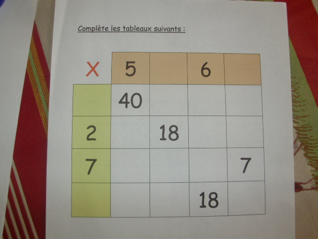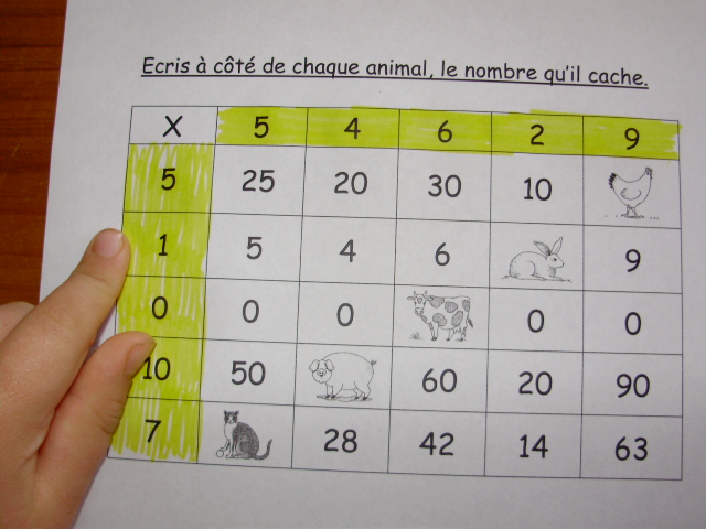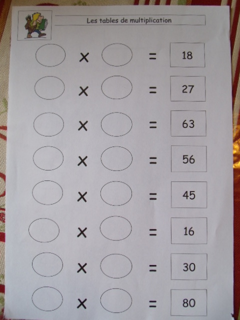 tables de multiplications. La fiche ci-dessous indique un exemple de