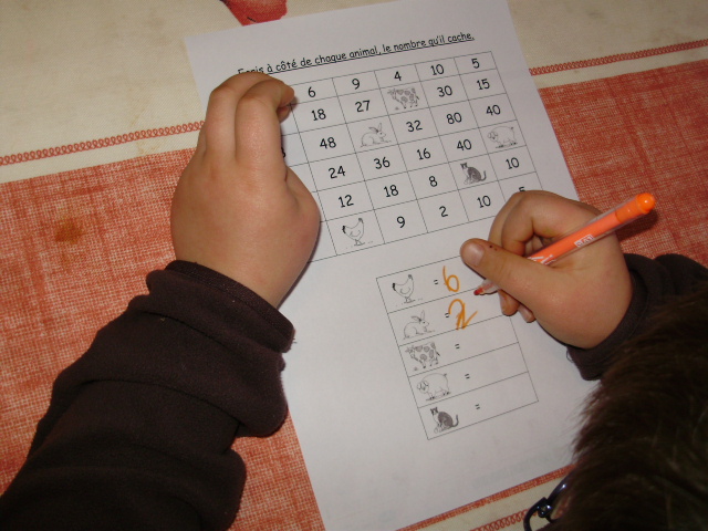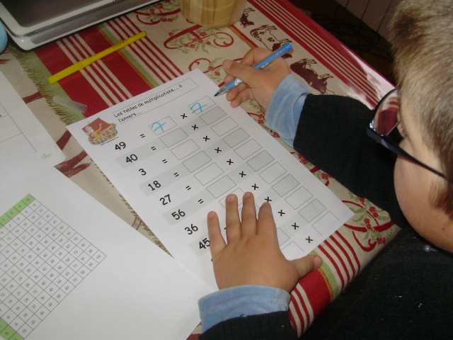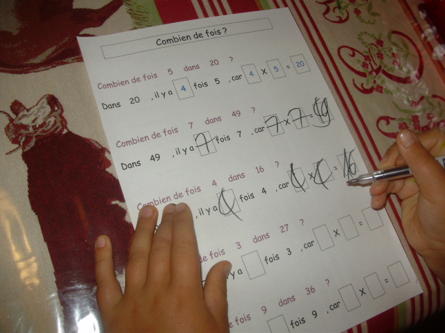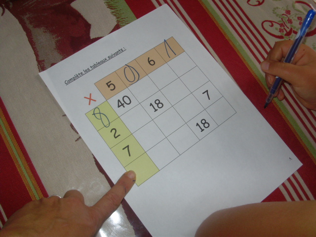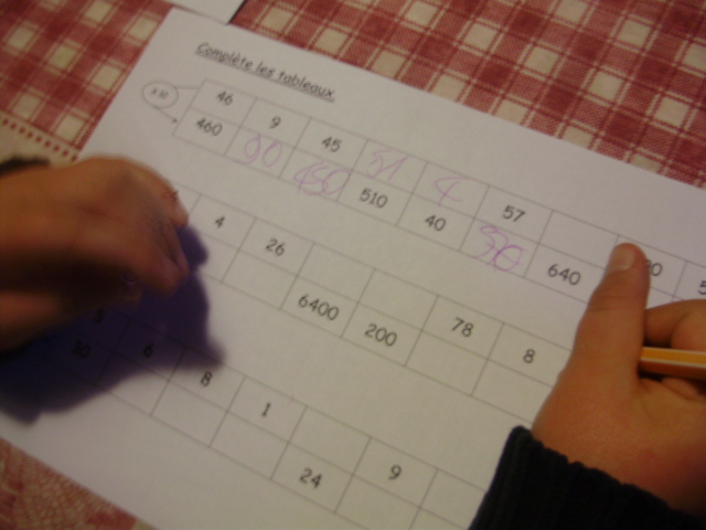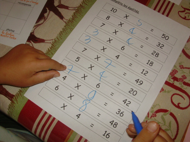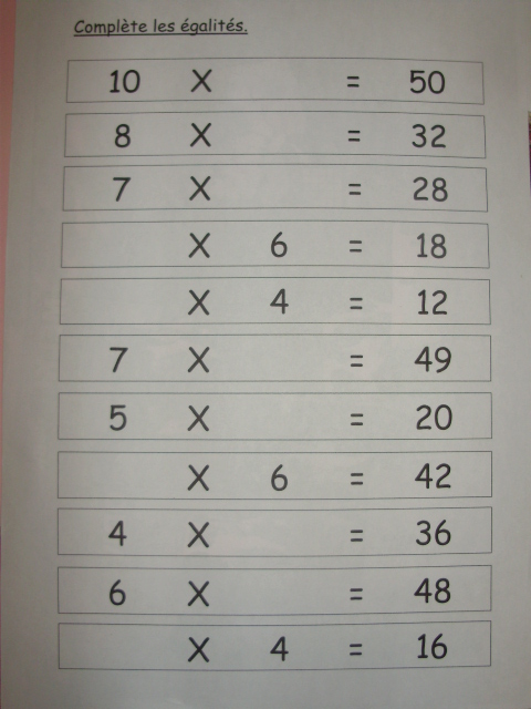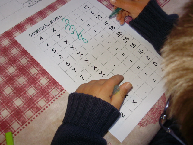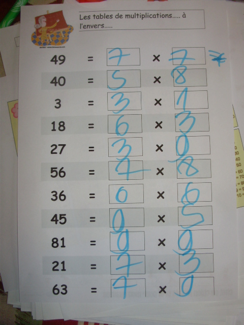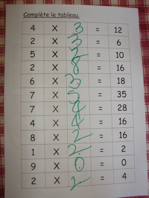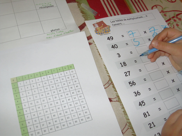 le travail de l'apprentissage des tables de multiplications à l'envers.