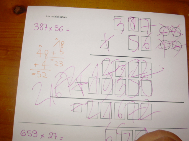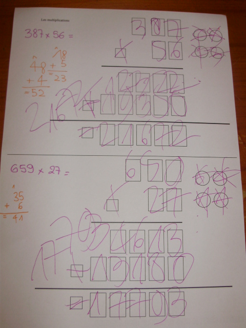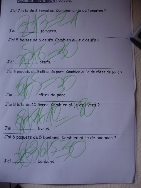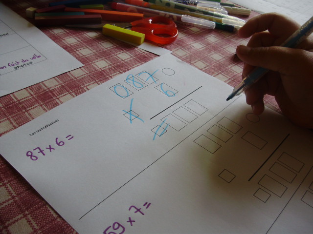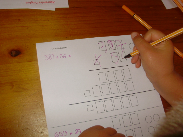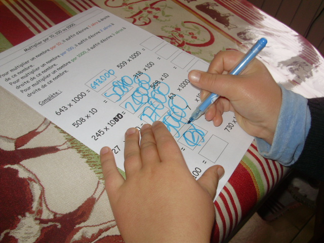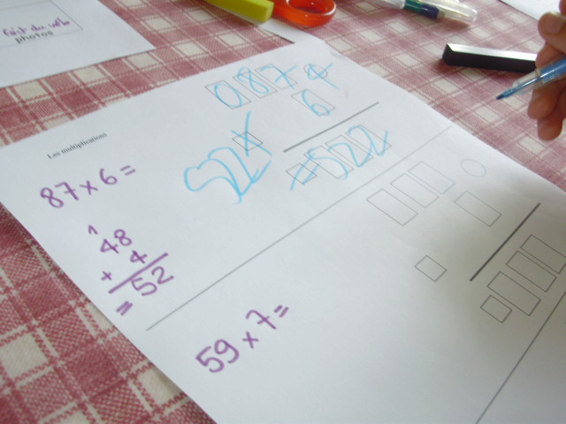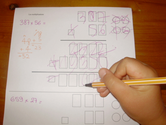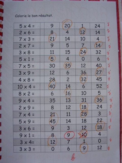 Dans la pratique, notre fils n'aime pas colorier et donc préfère entourer le résultat.