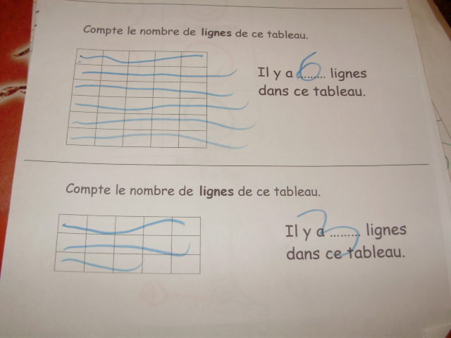dénombrement des cases d'un tableau. On apprend aux enfants à calculer