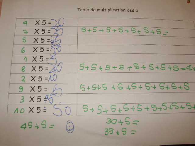 chiffres déjà appris. J'ai d'abord proposé l'apprentissage de la table