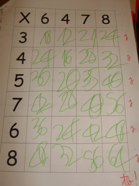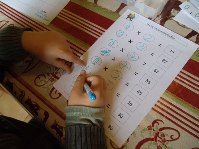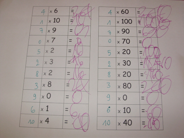 préparé des fiches de multiplications à trous. C'est un très bon moyen