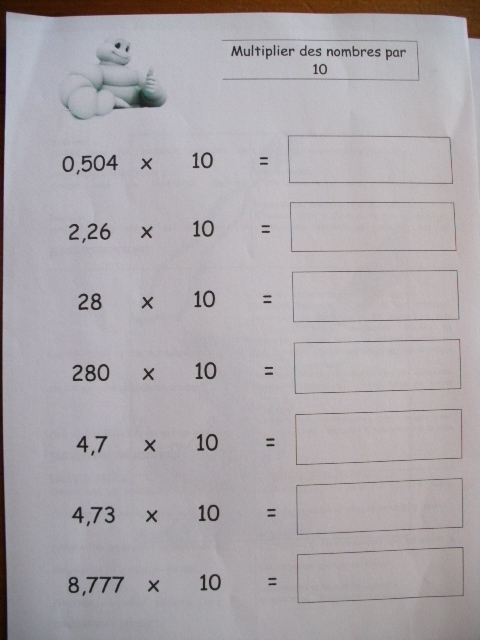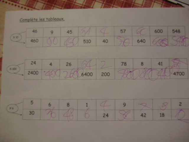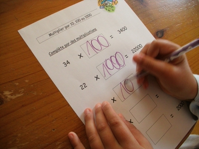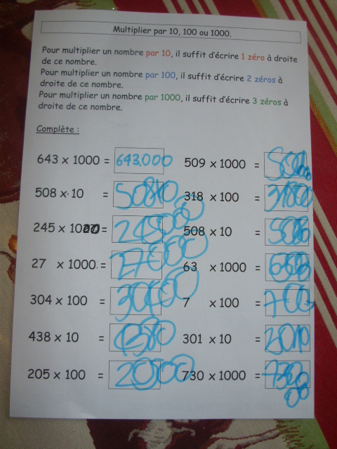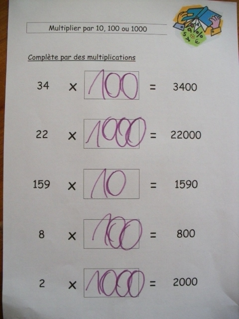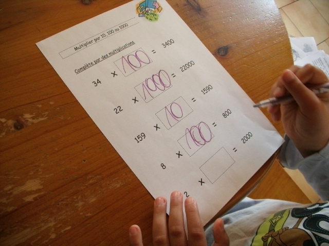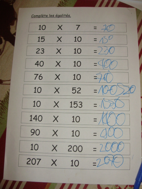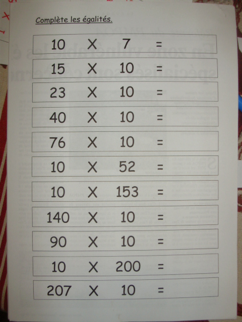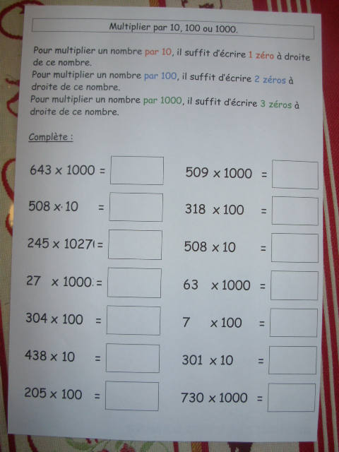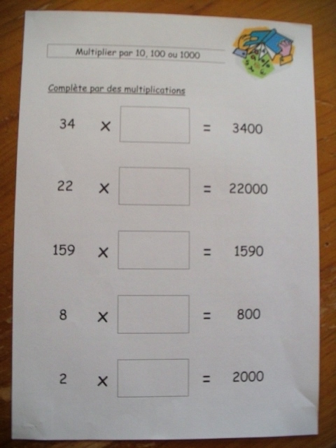 Des tableaux à compléter X10, X100 et X un autre nombre: