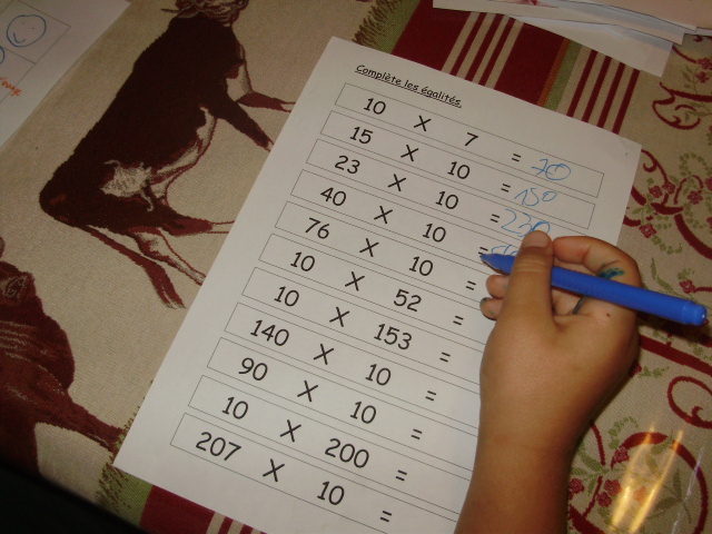 multiple de 10. Ainsi, j'apprends à l'enfant que pour multiplier 4 x