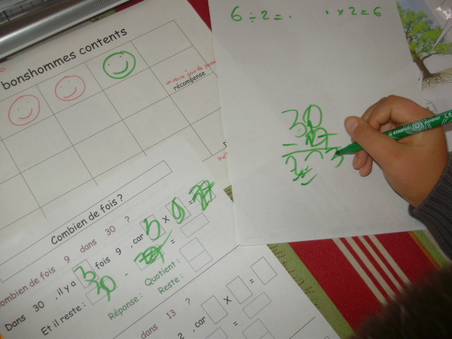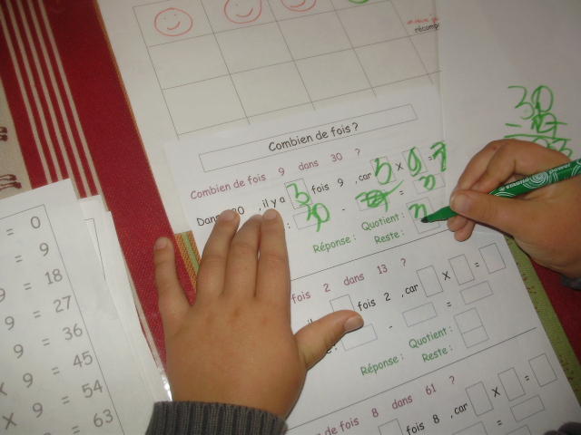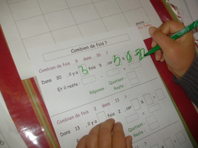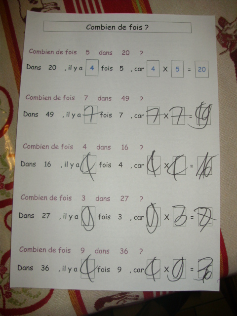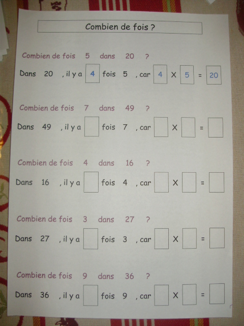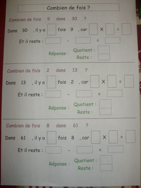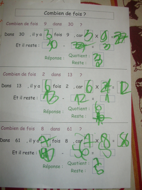 Ainsi, il peut compléter la feuille car il a trouvé le quotient et le reste.